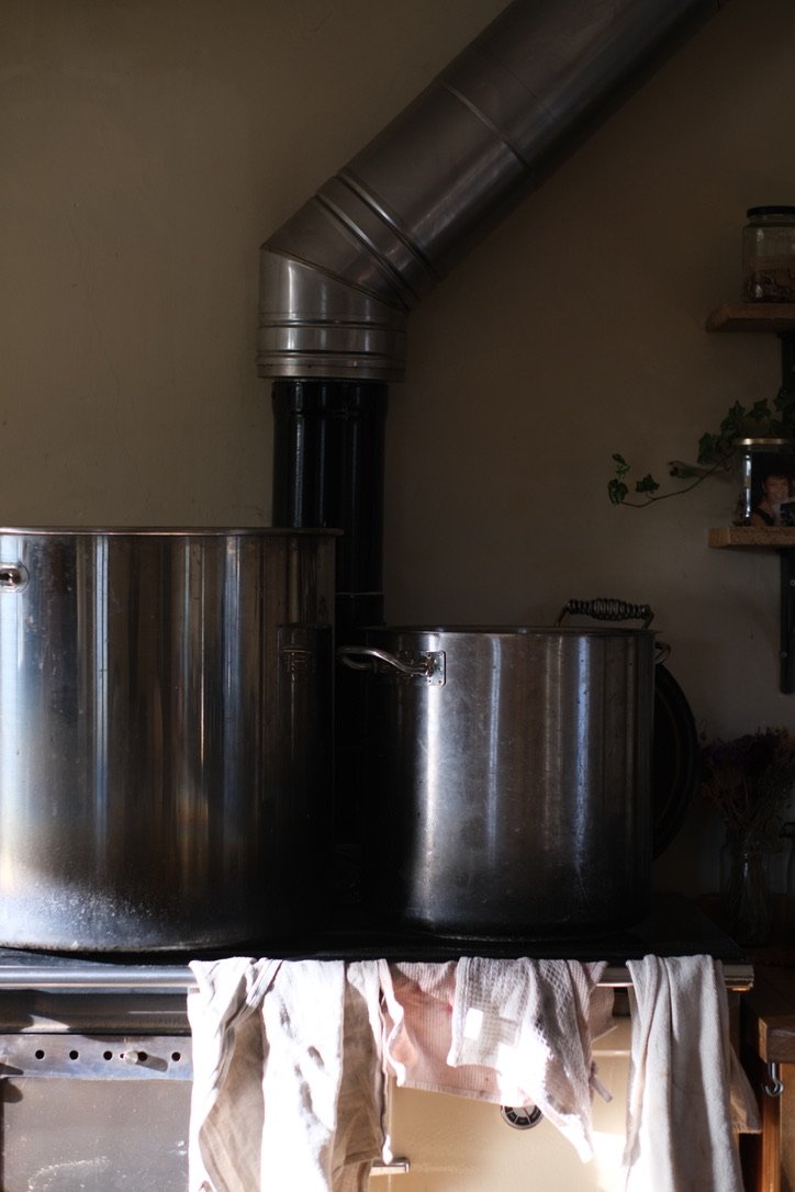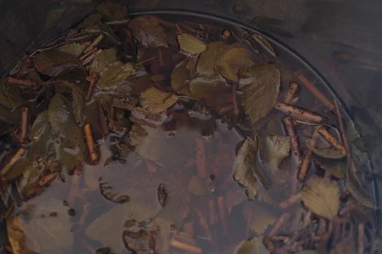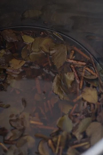 Harvested from abundant wintering Bramble canes. Brewed over woodfire using a traditional mineral-free natural dye process.